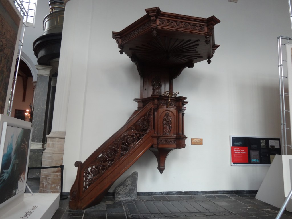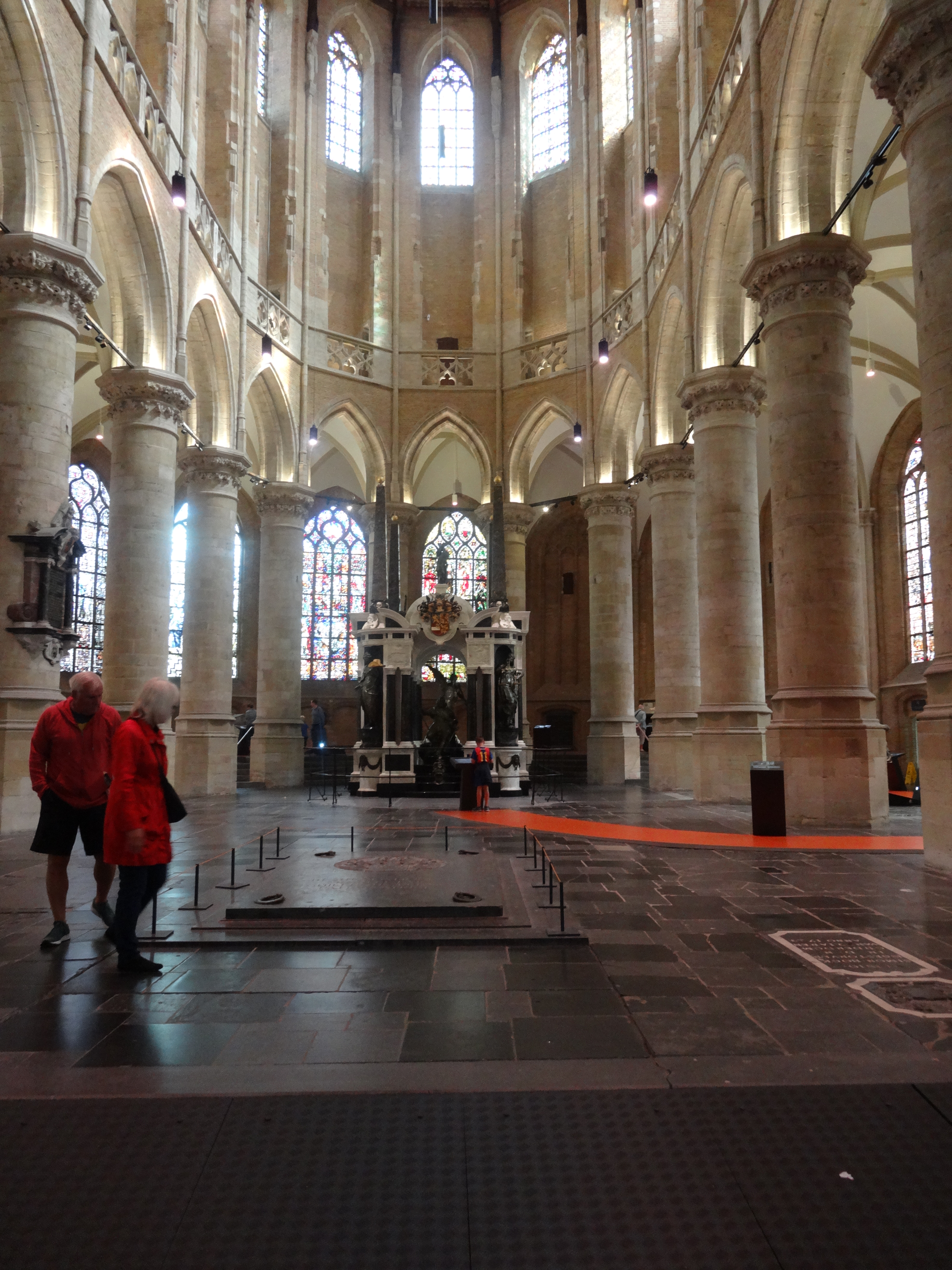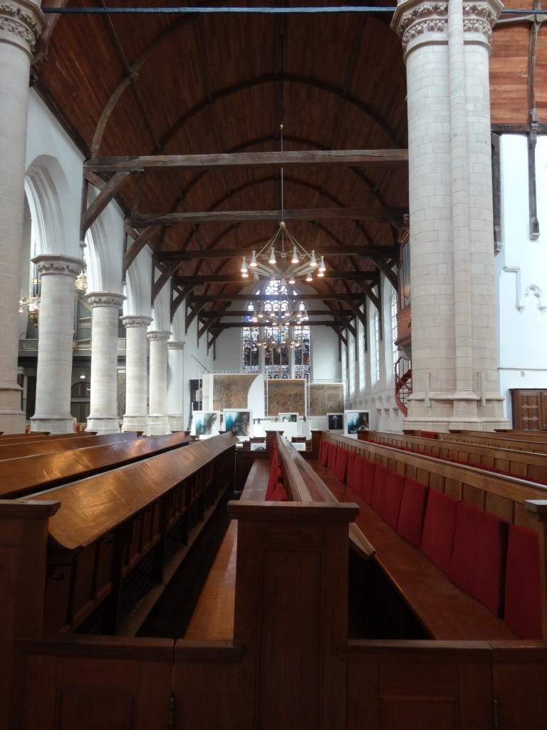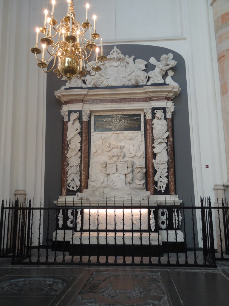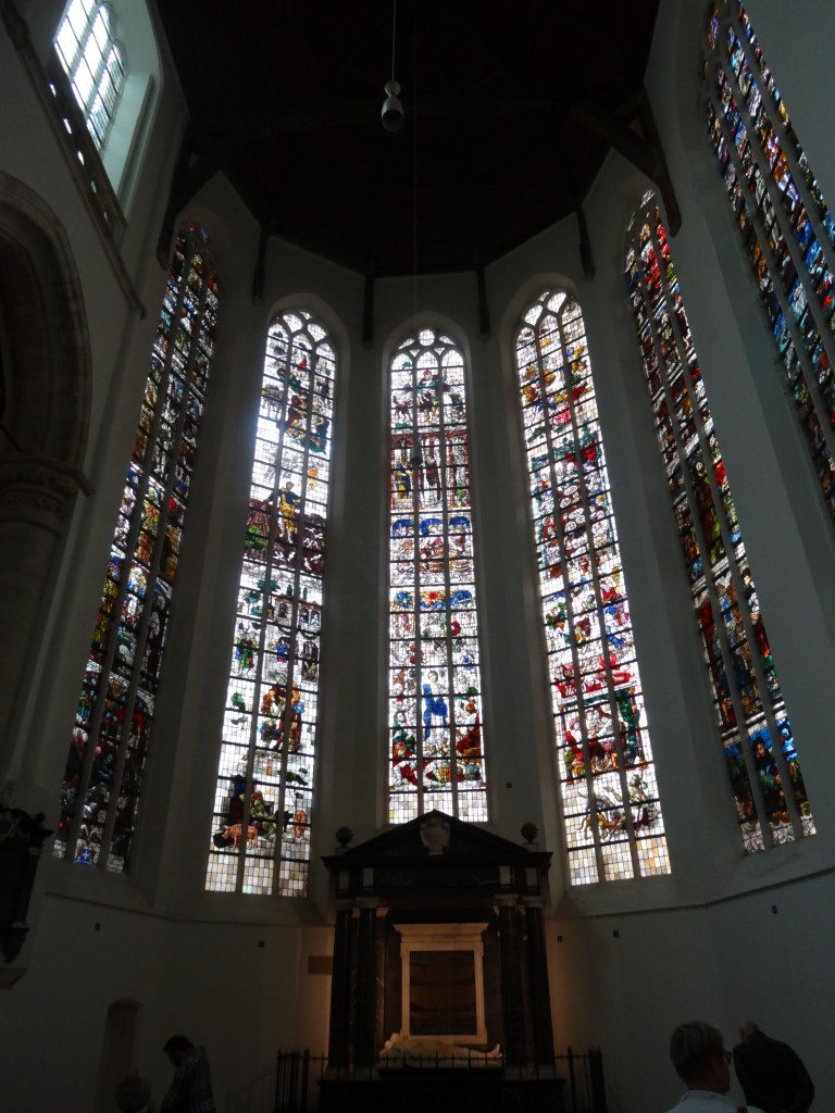 Inside the Olde Kerk, I saw the burial sites of a lot of “Dutch Heroes”, of whom I’d never heard, even though one of them “invaded” the UK by sailing up the Thames into London. Of course, I have forgotten which one did that, as I got distracted by a Dutch name I did know – Johannes Vermeer, who lived and died in Delft, and who, when he died was not very wealthy, and so was buried in an upright position, so they didn’t have to spend so much money on his grave.