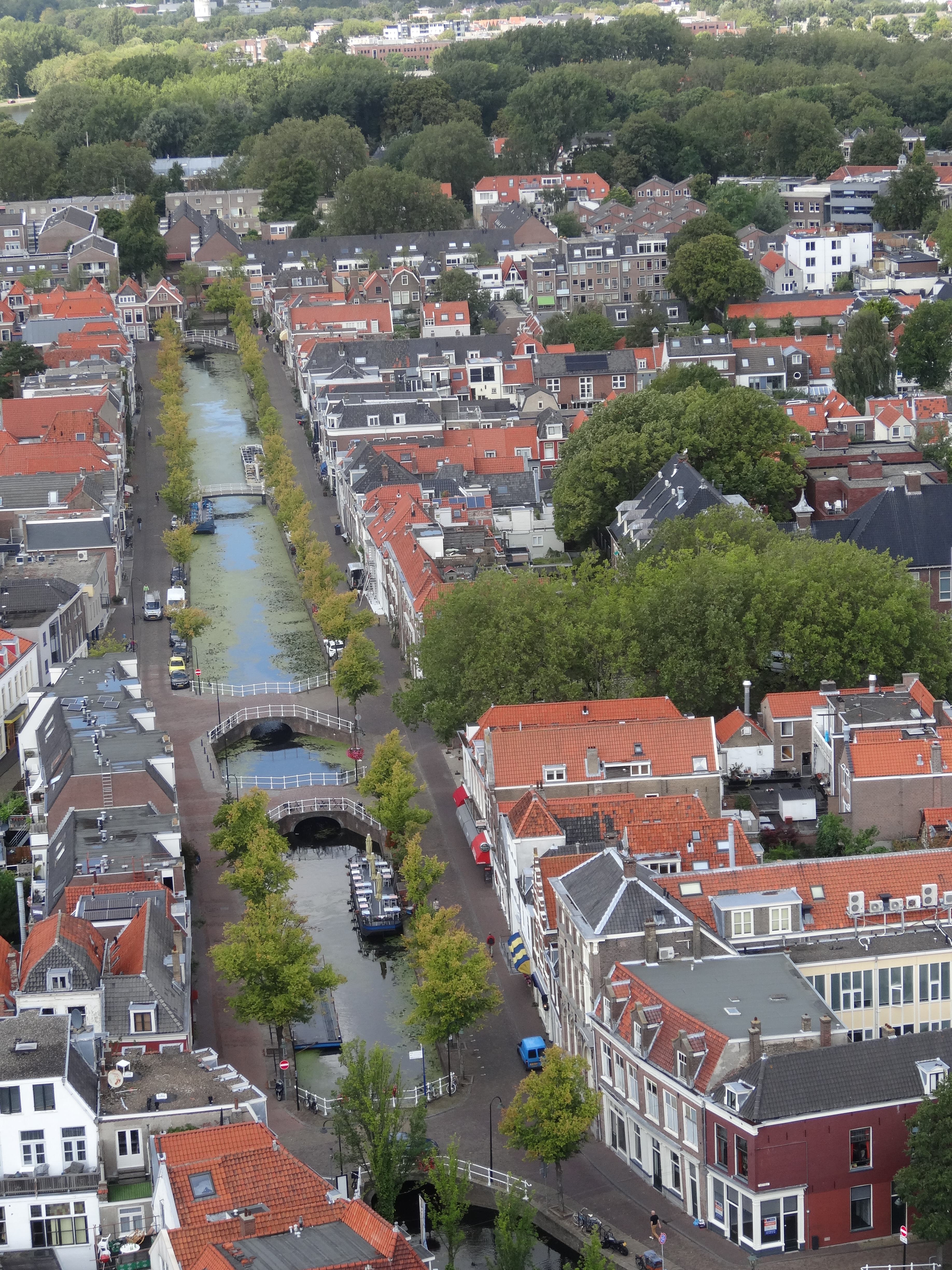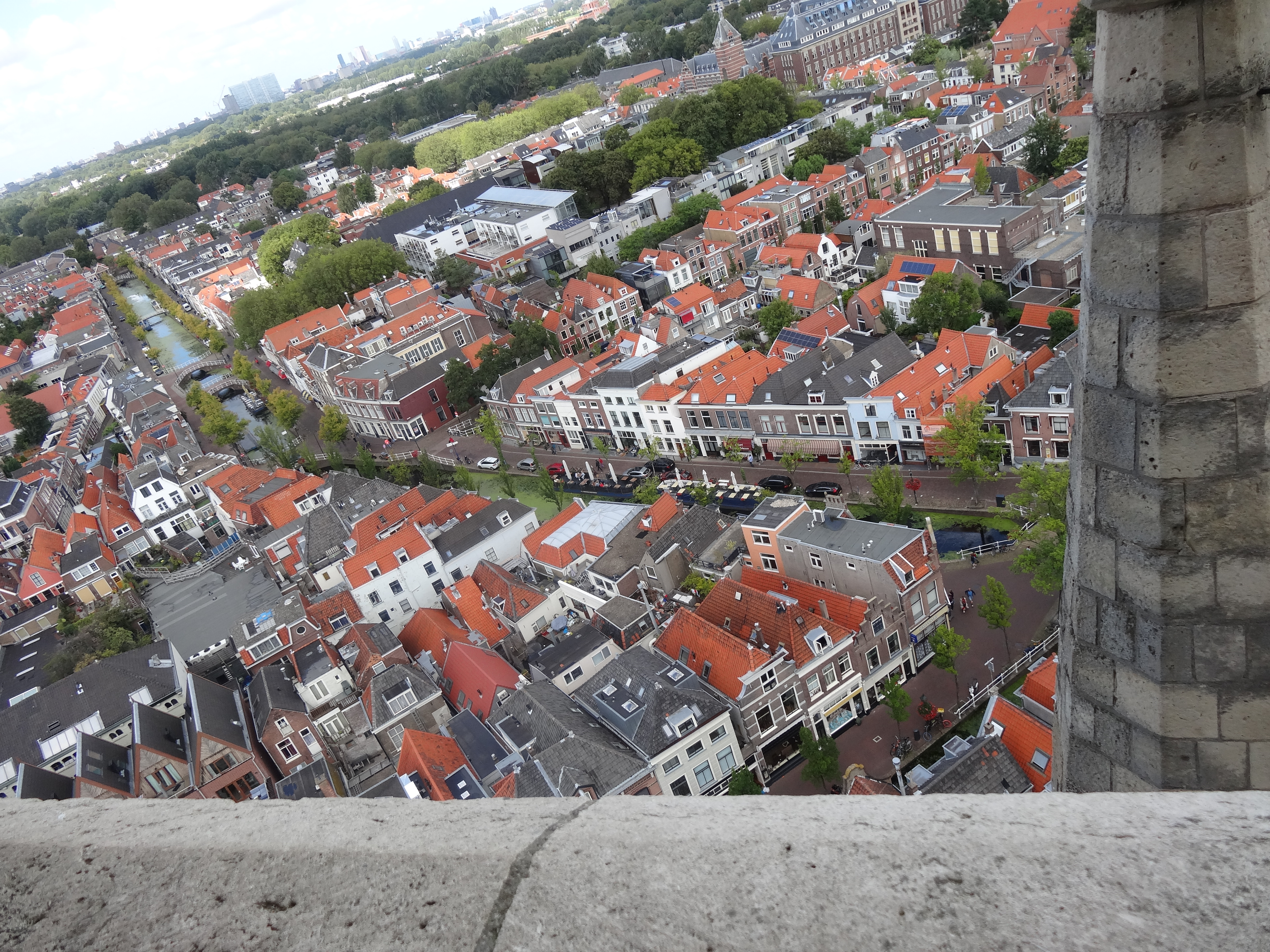 Incidentally, the tower here is also pretty interesting, as they first started building it in the classic red brick, but they wanted the tower to be fancy, so they continued it in white brick, and then ran out of money, so had to finish it with cheap white brick which over time goes black, so the Nieuwe Kerk tower is a tricolore. The height you get up to is in the black part and it is very high.