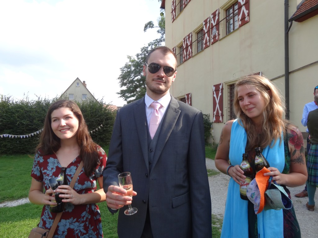The next day was the wedding itself and let me tell you, organising twelve people through the shower wasn’t easy but somehow we managed it and we were all suited and booted and ready to go on time. In fact, the car comrades were early enough to sneak in a quick bev before the other guests started arriving, although Lewis did have a misadventure with alcohol-free beer.